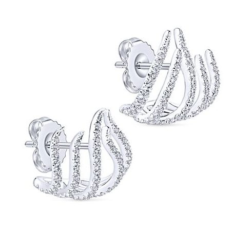 White Gold Inside And Out Oval Diamond Hoop Earrings