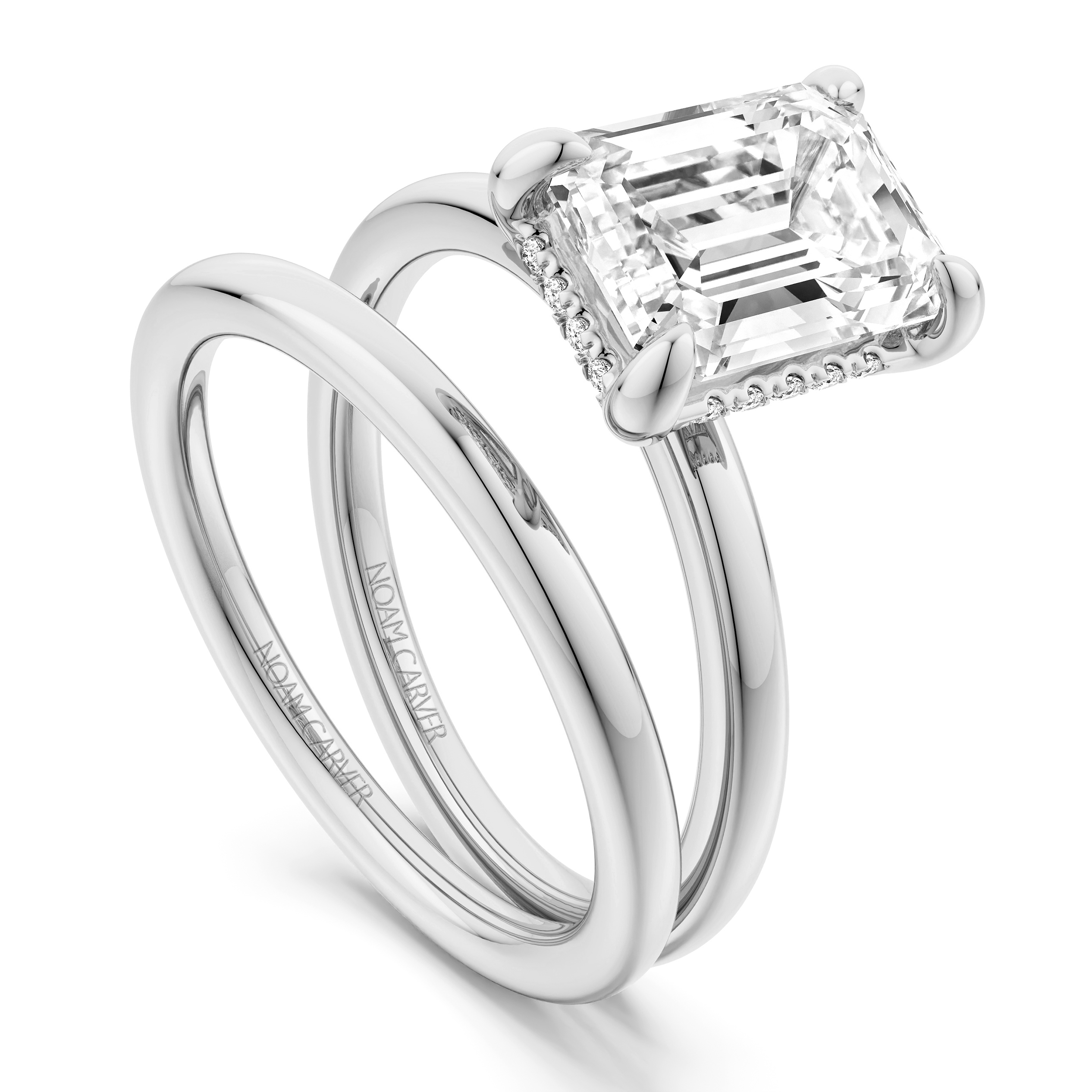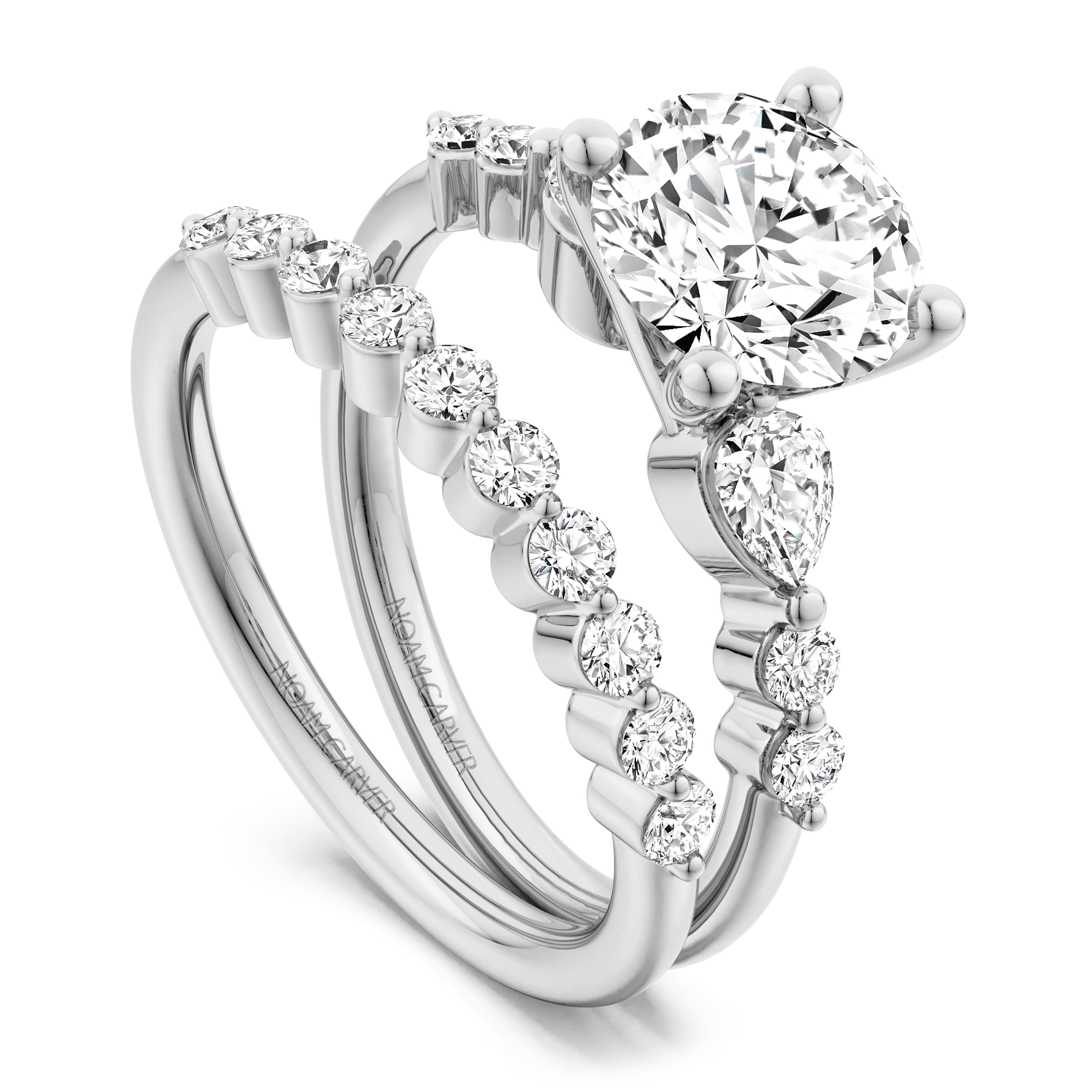 A three diamond engagement ring with intricate hand engraving on the band to give it an antique look. *Center diamond not included*
